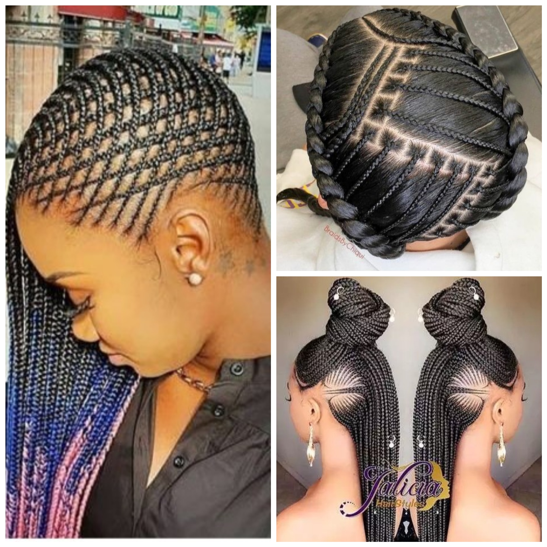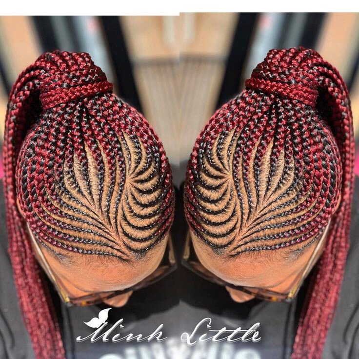 To style your hair this way, you will have to pull back some braids near the face and then weave them through each other on top of your head.