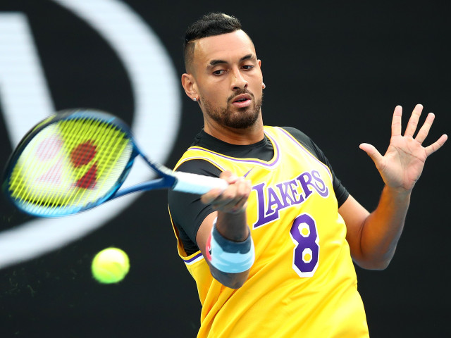 Nick kyrgios took to the court at rod laver arena wearing a los angeles lakers jersey, in honour of nba legend kobe bryant, who died in a helicopter crash on monday morning (aest).